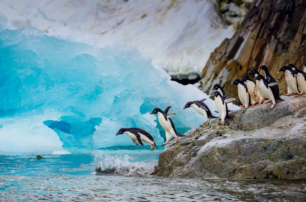 Días de pura exploración en las Islas Shetland del Sur y la Península Antártica, donde se navegará dentro de la caldera de un volcán activo.