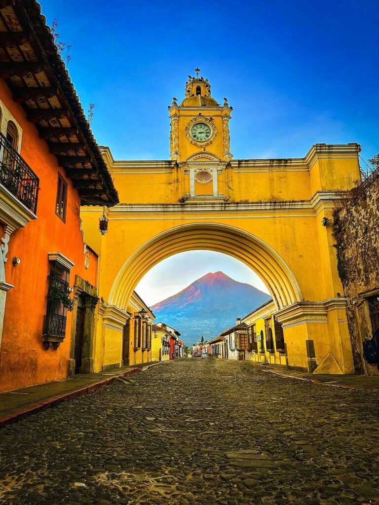 Imaginensela así: caminás por adoquines que pisaron conquistadores españoles hace 500 años, con el Volcán de Agua asomando imponente al fondo como una postal que parece photoshopeada. Las fachadas ocre, amarillo y terracota de los edificios coloniales te envuelven en una paleta de colores que, literalmente, no existe en ningún otro lugar del mundo de la misma manera. Y en el medio de todo eso, la vida cotidiana de los guatemaltecos transcurre sin pose y sin filtros.