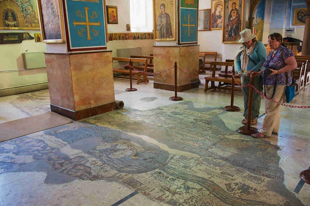 Madaba, conocida como «la ciudad de los mosaicos», está a solo 10 kilómetros del Monte Nebo. Esta encantadora ciudad alberga la famosa Iglesia de San Jorge, hogar del mapa mosaico de Madaba, un extraordinario mapa del siglo VI que representa Jerusalén, el valle del Jordán y el delta del Nilo. Es el mapa-mosaico más antiguo de Tierra Santa que se conserva, compuesto por dos millones de teselas de piedra. Caminar por las calles de Madaba, visitando sus talleres de mosaicos contemporáneos, te conecta con una tradición artesanal que ha permanecido viva durante 1.500 años.