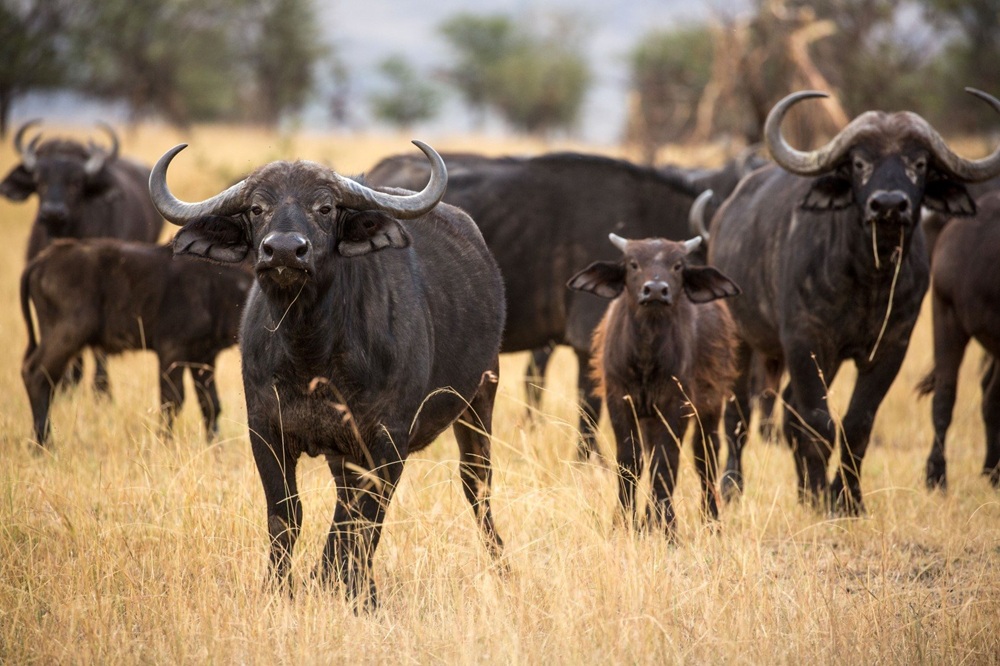 Búfalos y rinocerontes completan el quinteto. Los búfalos (Syncerus caffer) forman manadas de hasta 500 individuos, especialmente impresionantes en las llanuras abiertas del sector Musiara. Los rinocerontes, tanto negros como blancos, están protegidos en zonas específicas con vigilancia anti-caza furtiva 24/7. El Mara Triangle (sector occidental administrado por Mara Conservancy) tiene el programa de protección de rinocerontes más exitoso, incrementando poblaciones un 8% anual desde 2018.